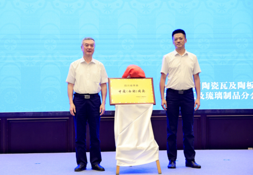 中國建筑衛生陶瓷協會會長繆斌和榮縣人民政府縣長趙磊共同為“中國(西部)陶都”揭牌。