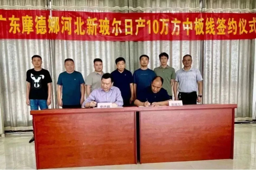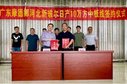 近日,摩德娜與河北新玻爾日產10萬方中板線簽約儀式順利舉行,新玻爾郭彥剛董事長和摩德娜李展華董事長出席簽約儀式,雙方代表共同見證這一重要時刻。日均大產量生產線的啟動再次刷新行業單線產能記錄,這標志著雙方將共同譜寫產業鏈深度合作的嶄新篇章!