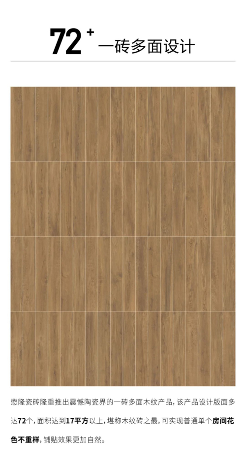 本屆展會,懋隆瓷磚將帶來震撼陶瓷界的一磚多面木紋產品,該產品設計版面多達72個,面積達到17平方以上。那么今天,讓我們一起跟隨小陶的步伐,提前走進懋隆瓷磚感受一下吧!