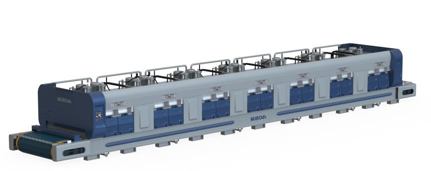 窯爐采用的是科達極光系列高效節能寬體輥道窯(YG3.1m/466.2M-Q),應用了助燃風加熱系統、助燃分組精準控制系統、窯體綜合保溫升級系統、高效節能窯爐噴槍,輔以科達V3.0 窯爐智能控制系統,為該線樹立在產量、能耗、穩定性及智能控制等方面優勢提供了充足保障。