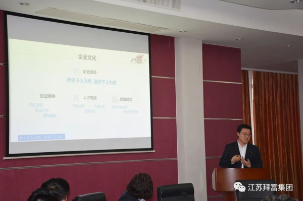 2023年11月11日,由拜富集團舉辦的《玻璃釉料應用技術》座談活動在江蘇宜興拜富科技園召開。來自福萊特、旗濱、耀皮、飛天、中力、銀泰豐、銀升、福坤、發德、明陽等周邊玻璃深加工企業的嘉賓共聚拜富,與公司研發、銷售部門等相關負責人,共計30余人一起參加了本次活動。此次活動,旨在加深玻璃深加工行業上下游的交流合作,降低玻璃產品成本,提高產品性能。活動由拜富科技常務副總經理李萬景主持,拜富集團董事長王美蘭出席會議并作歡迎致辭。